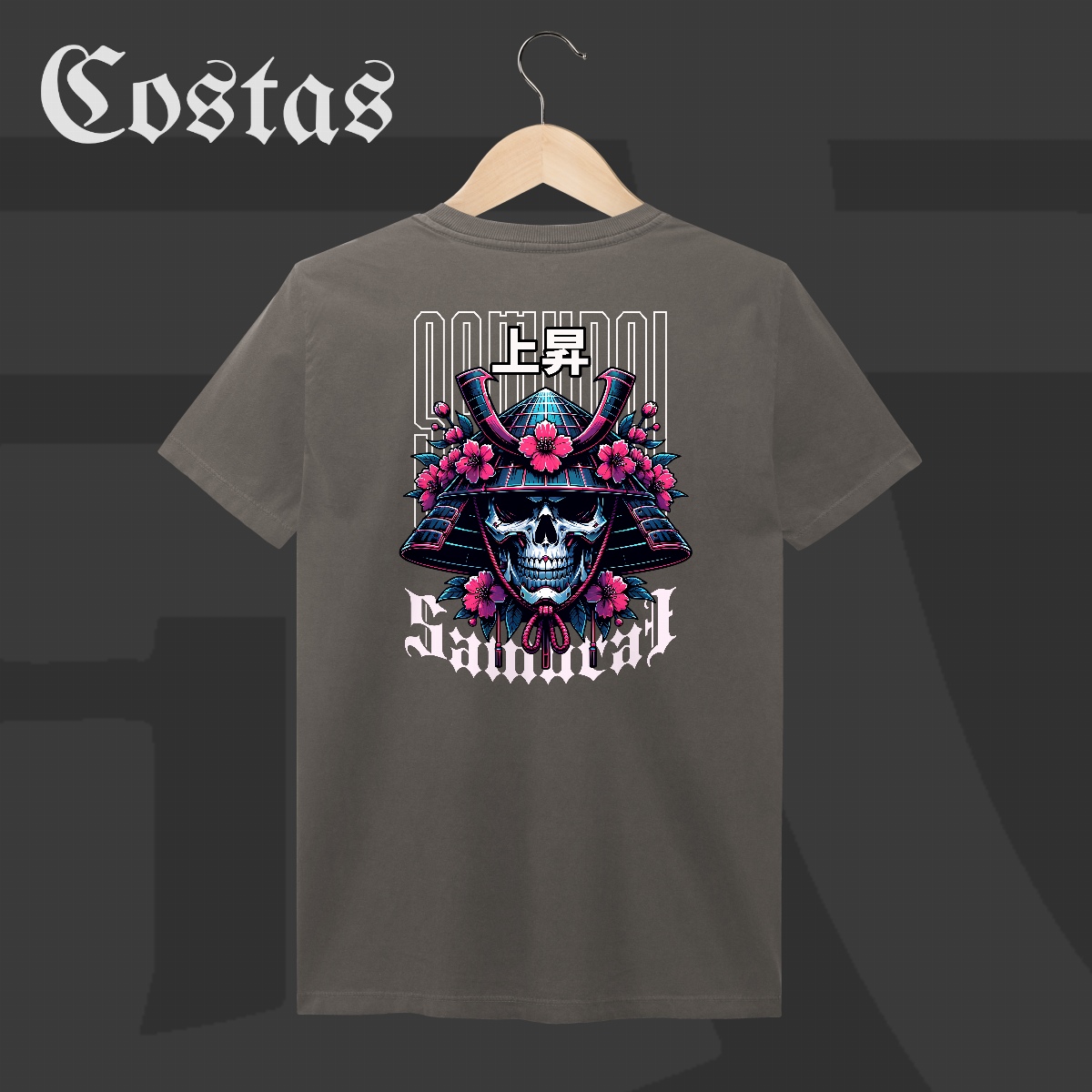 Entre o brilho intenso do neon e as sombras do espírito guerreiro, nasce Death Blossom – Japão Old School. Uma estampa que une a delicadeza das flores de cerejeira ao poder sombrio do crânio samurai, simbolizando que até na morte existe beleza — e força.