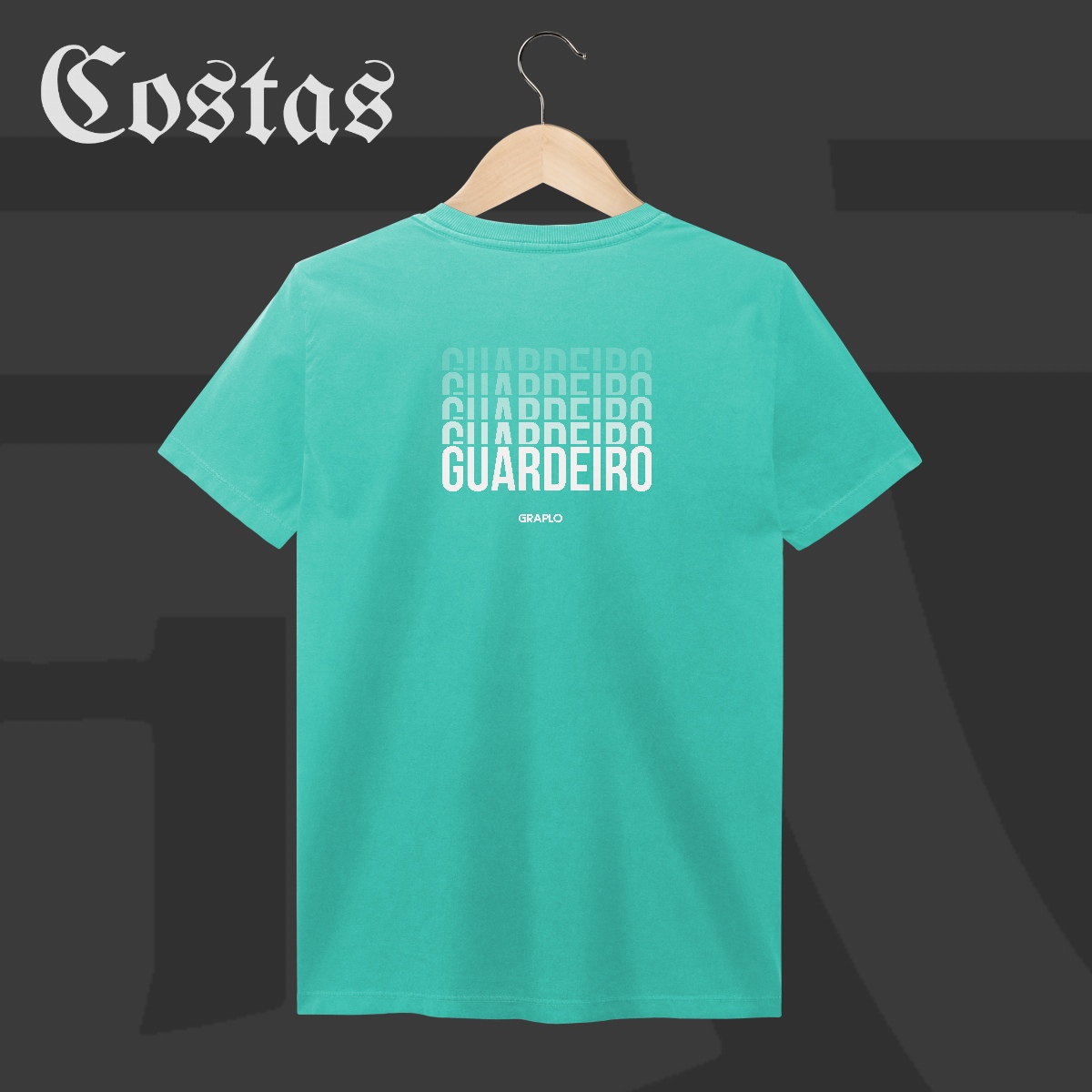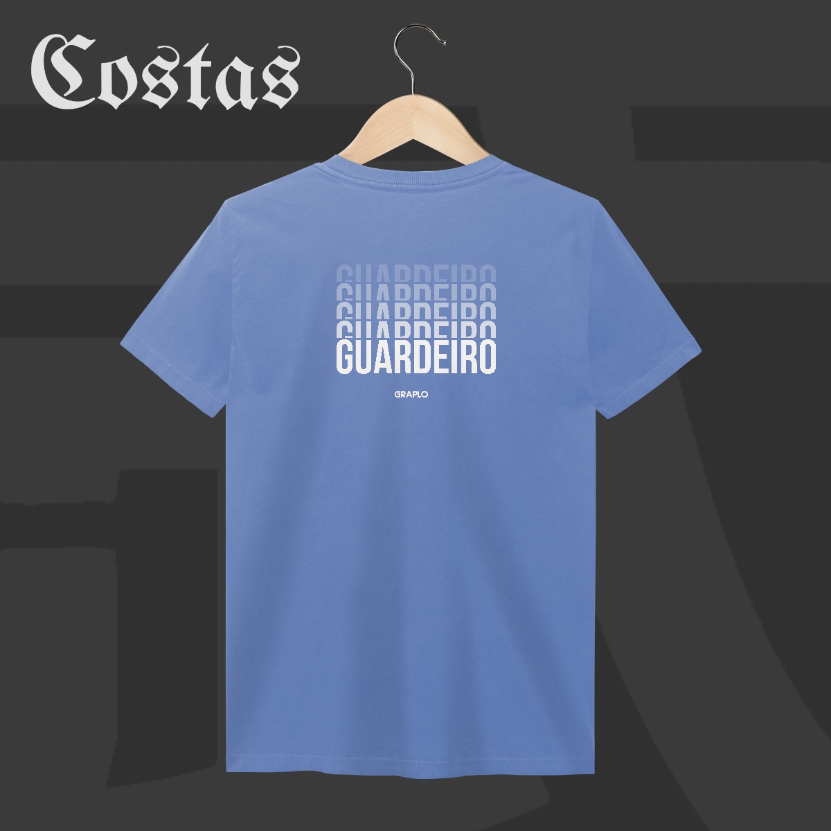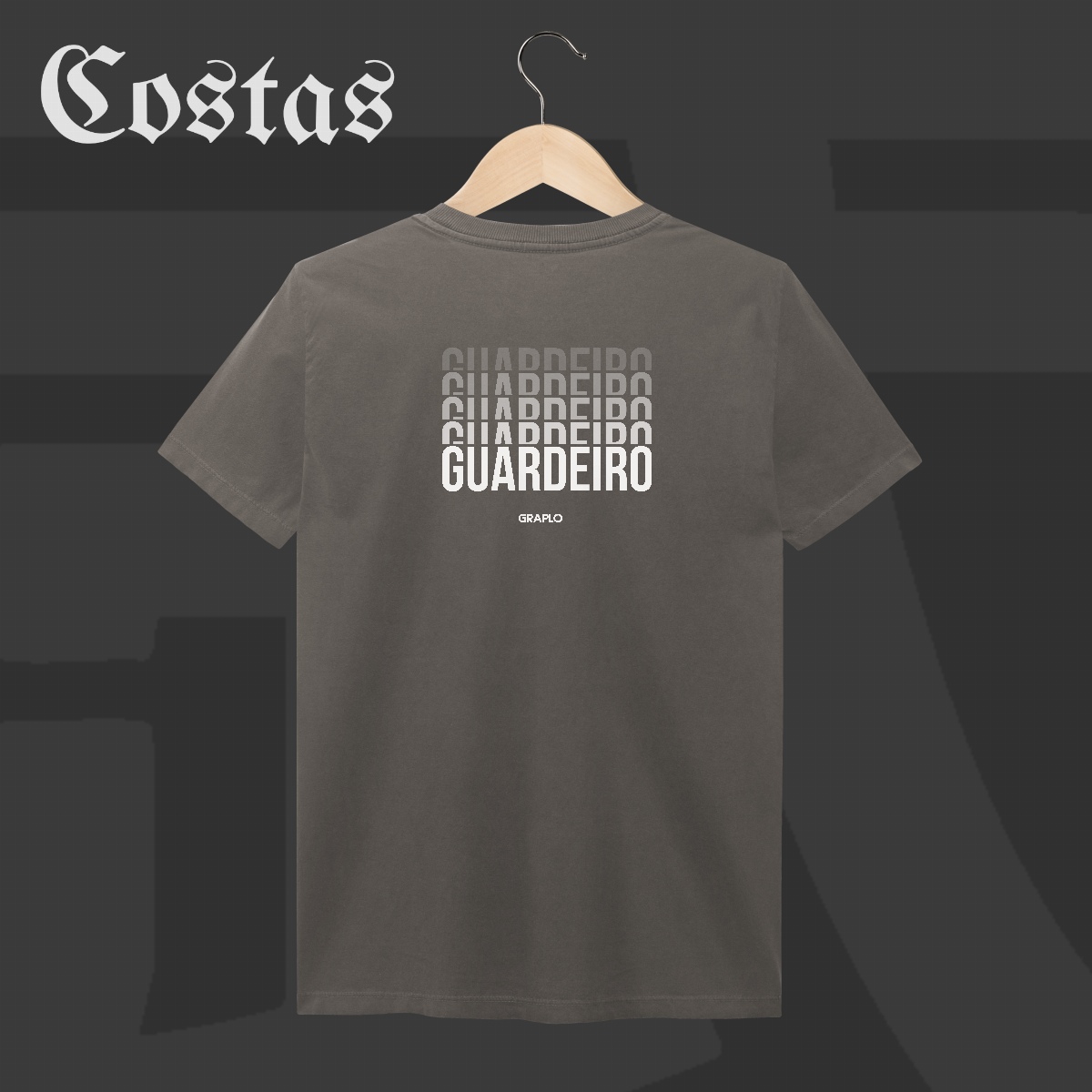 A estampa “GUARDEIRO” traz uma composição tipográfica em degradê, representando camadas de defesa, estratégia e criatividade que só quem guarda sabe aplicar.