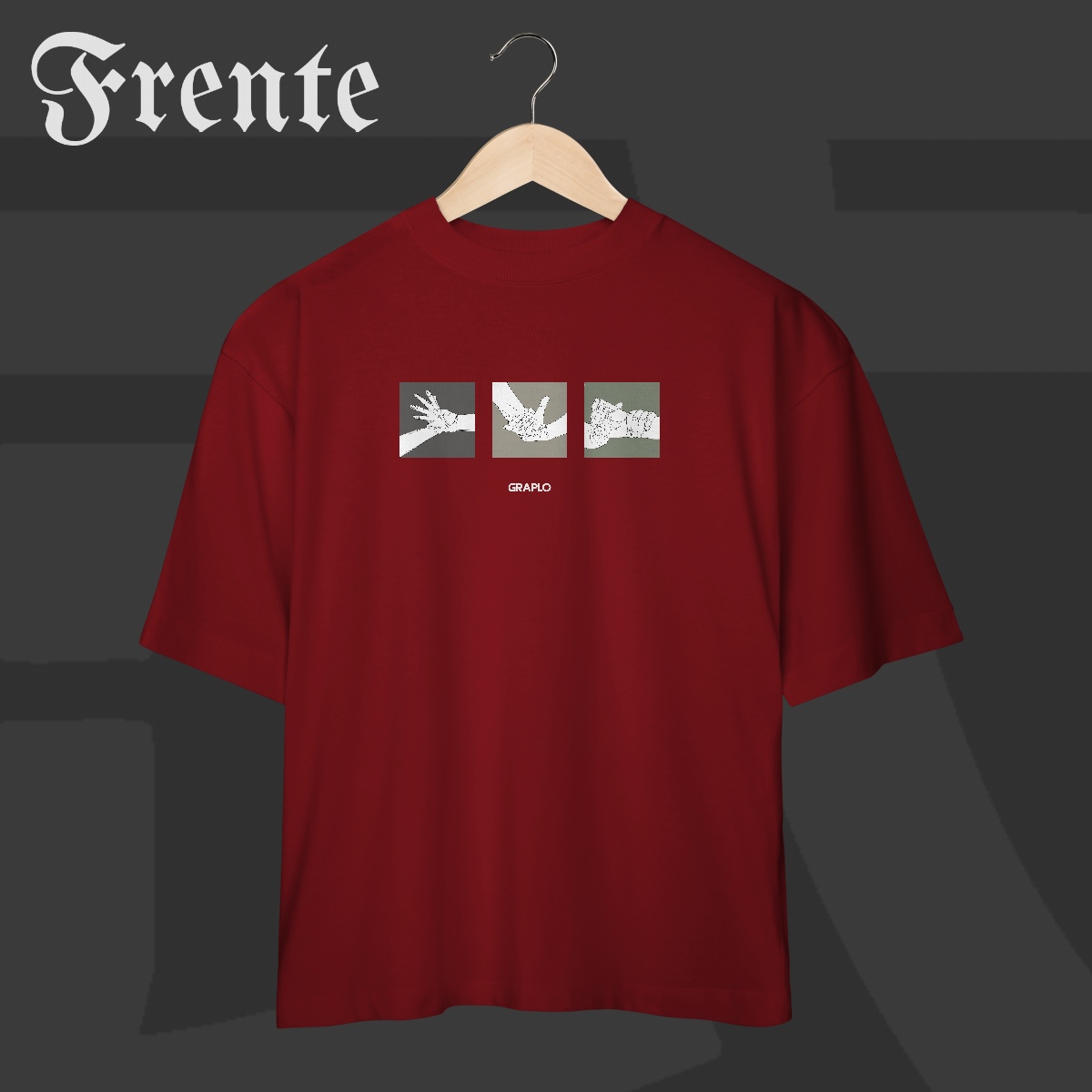 A clássica “mão de vaca” virou arte. Essa estampa traz três formas diferentes de aplicar o controle de punho, com traços limpos e cheios de significado pra quem vive o tatame. Técnica simples, mas eficiente — como tudo no Jiu-Jitsu de verdade.