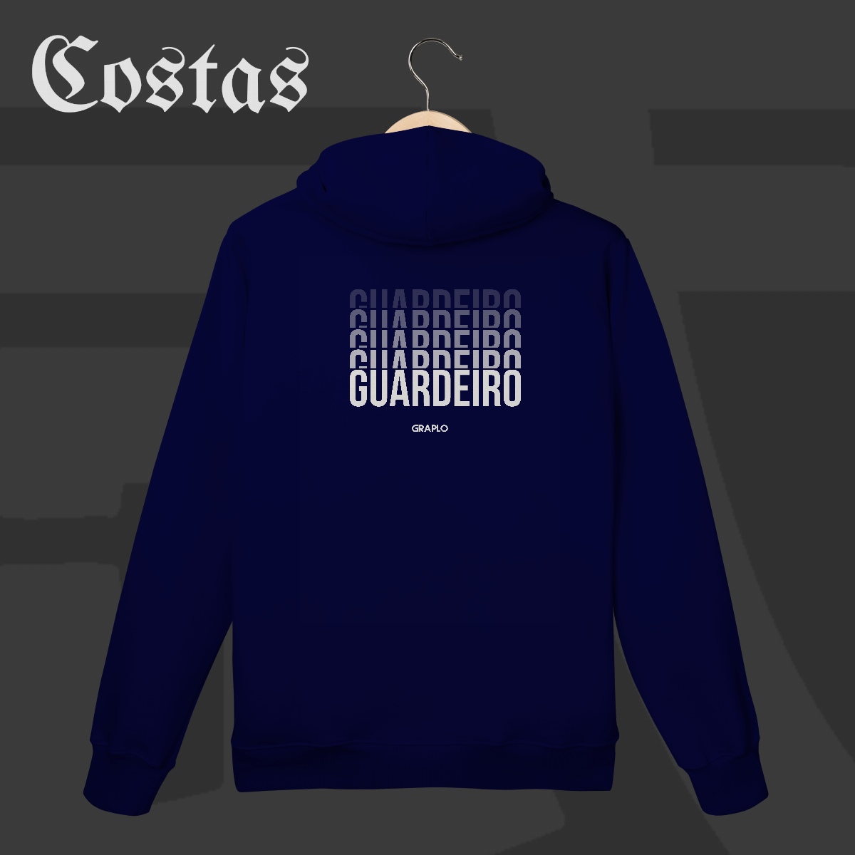 A estampa “GUARDEIRO” traz uma composição tipográfica em degradê, representando camadas de defesa, estratégia e criatividade que só quem guarda sabe aplicar.