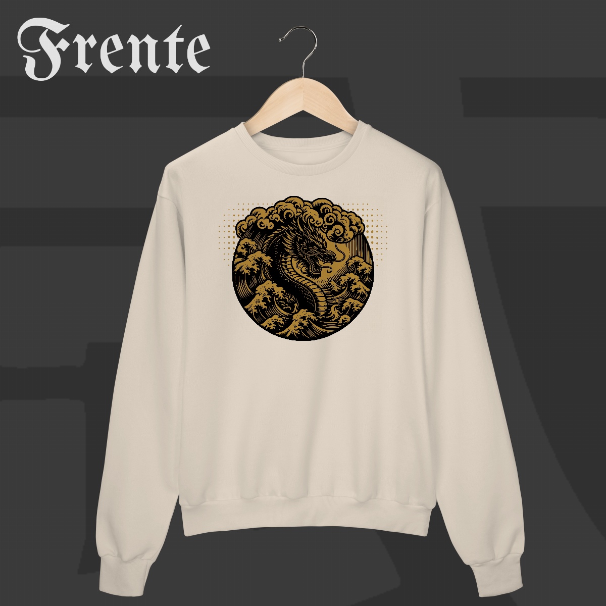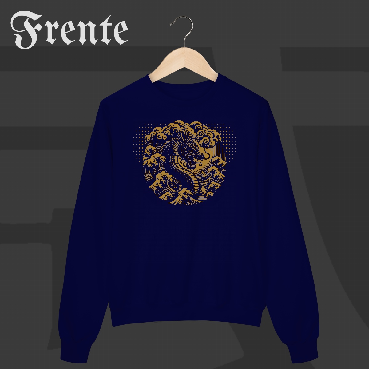 Das profundezas do mar ergue-se o dragão, símbolo de poder, sabedoria e domínio sobre as forças da natureza. Ondas enfurecidas e nuvens densas se entrelaçam, criando uma arte imponente que carrega a essência do Japão tradicional e a força indomável do espírito guerreiro.